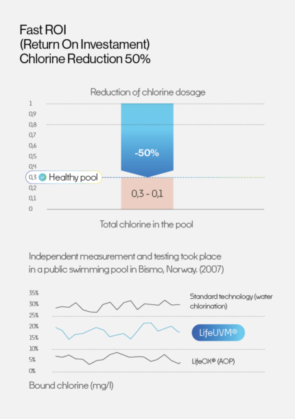 What is a healthy pool?Fast ROI (Return On Investment) - Chlorine Reduction 50%