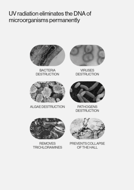 Chemical-free technology. Minimizing the chemicals in the water plus reduction of monthly costsA healthy pool is one that ensures a safe, clean, and pleasant environment for swimmers while minimizing health risks and environmental impact. This is achieved by effectively removing harmful substances like trichloramine, reducing chemical usage, and maintaining optimal water quality. Advanced technologies, such as UV and AOP systems, play a crucial role in achieving a balanced and eco-friendly pool environment.